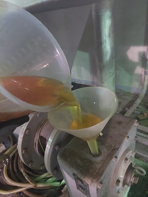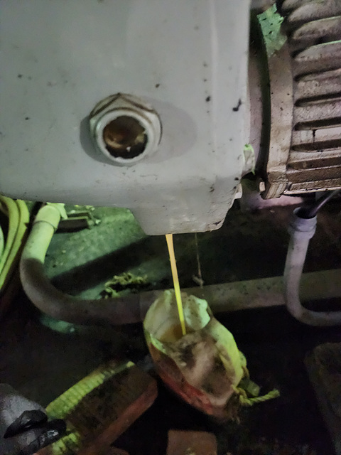 감속기의 드레인볼트를 제거하여 오일을 빼내고 있습니다. 오일을 뺄때는 항상 밑에 오일을 받을수 있는 통을 미리 준비하여 빼내시기 바랍니다. 오일을 어느정도 빼고 나면 다시 볼트를 잠궈 새지않게 막아준다음 감속기의 윗 부분을 보면 오일을 주입할수 있는 볼트나 캡이 있습니다. 여길 풀어서 깔대기 같은 것을 이용하여 오일을 넣어줍니다.