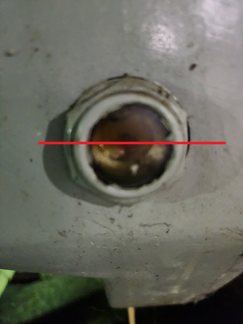 오일을 넣을때는 적정량을 넣어줘야 하는데요. 감속기의 겉면을 자세히 보시면 유면게이지가 보이실 겁니다. 오일이 얼마만큼 들어갔는지 바깥에서 육안으로 확인이 가능합니다. 유면게이지의 가운데를 자세히 보시면 빨간점이 찍혀있고 그 빨간점 만큼 넣어시면 딱 맞게 오일이 주입이 된것입니다.