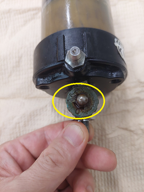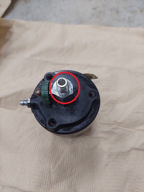구리스 컵을 거꾸로 뒤집어 보았습니다. 빨간색으로 표시해둔 토출 부분이 보입니다. 이 부분을 현장의 구리스 주입 부분에 나사산 형태로 조립한다음에 위에서 언급한 밸브를 열면 되는 것입니다.