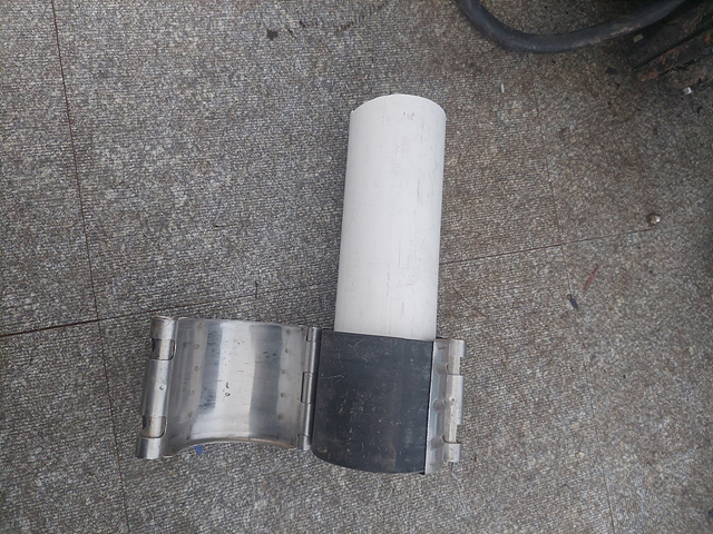 해제를 해보면 실링을 하는 고무가 보이고 겉을 감싸주는 서스 케이스로 나뉩니다. 고무가 볼팅의 힘으로 인해 배관의 크랙 부분을 잡아주어 누수를 방지해 주는 것입니다.