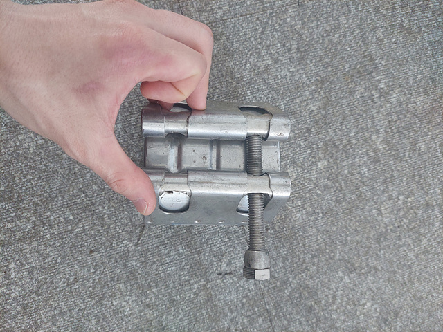 우리가 흔히 쓰는 일반 배관은 10Kg의 압력을 버티는 것이 많은데 그만큼 버텨주는 성능을 보여줍니다. 배관을 감싸듯이 덮은 다음에 두 개의 볼트를 사용하여 꽉 잡아주는 방식이지요.