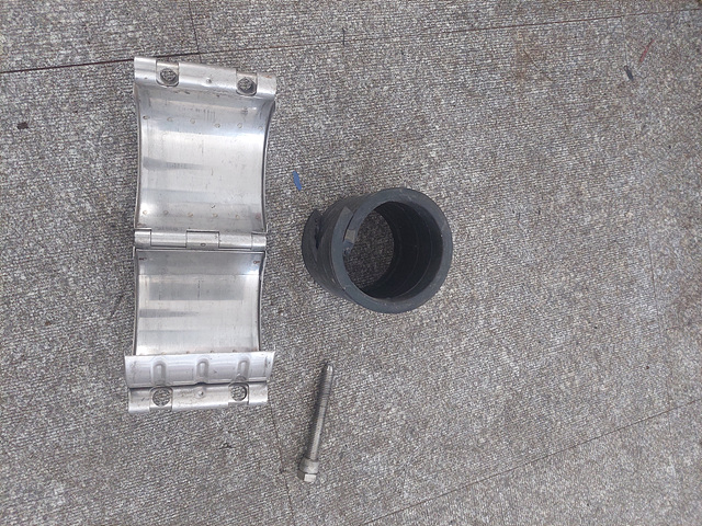배관 구경사이즈에 맞게 기성품으로 나오는 제품이고 안쪽에는 실링 역할을 해주는 고무가 있으며 바깥쪽으로는 압력을 강하게 견딜 수 있도록 스테인리스 재질로 이루어져 있습니다.