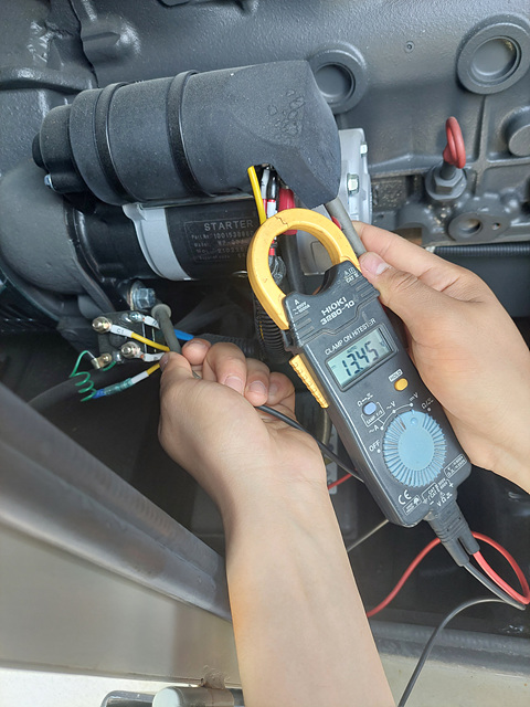 초기시동에 있어 필요한 배터리의 전압도 13V 정도로 잘 나오고 있습니다. 여기 전압이 터무니없이 낮게 나온다면 초기시동을 위해 돌려야 하는 스타트모터의 기동이 불가능 해져 끽끽끽 하는 소리만 나게 됩니다. 우리가 타고 다니는 자동차도 배터리가 방전되면 키를 돌려도 끽끽끽 하는 소리와 함께 시동이 안 걸리는 거와 같은 원리인 것이죠. 그래서 평소에 이 배터리 상태를 관리하는 것이 중요합니다.
