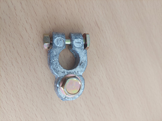 이런 모양의 차량용 배터리에서 많이보던 단자대입니다. 만약 현장에서 배터리를 교체할 시에 O형 터미널 구조로 된 전선이 인가되어 있는데, 이런 구조의 배터리를 구입하게 되면 단자대를 따로 구매해야 하는 불상사가 생기는 것이죠. 그래서 현장에서는 차랑용 배터리 단자대가 있는 구조보다는 직결로 연결되는 배터리를 구입하시는 게 좋습니다.