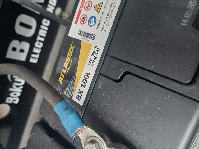 자동차 배터리로 정말 많이쓰는 아트라스의 BX100L 모델입니다. BX100L 모델은 위에서 언급했다시피 단자대를 거쳐서 물리는 구조입니다.