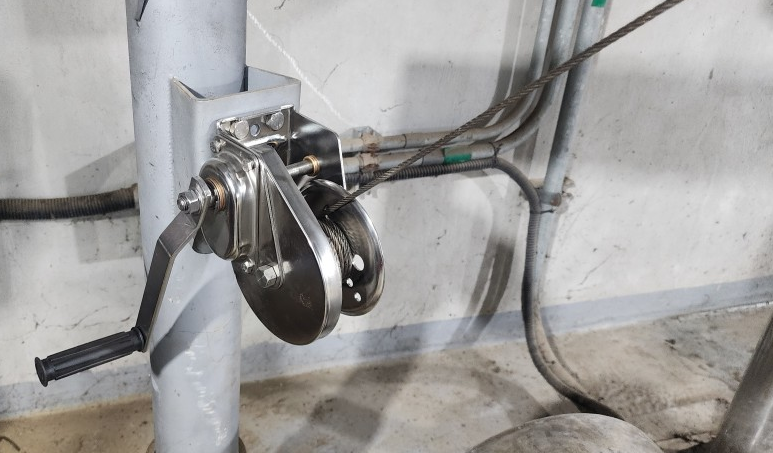 윈치를 설치하고 와이어를 연결한 모습입니다. 이렇게 설치를 한다음에 저 레버를 돌려주면 물건을 인양하거나 놓을때 수동으로 조작이 가능한것입니다.