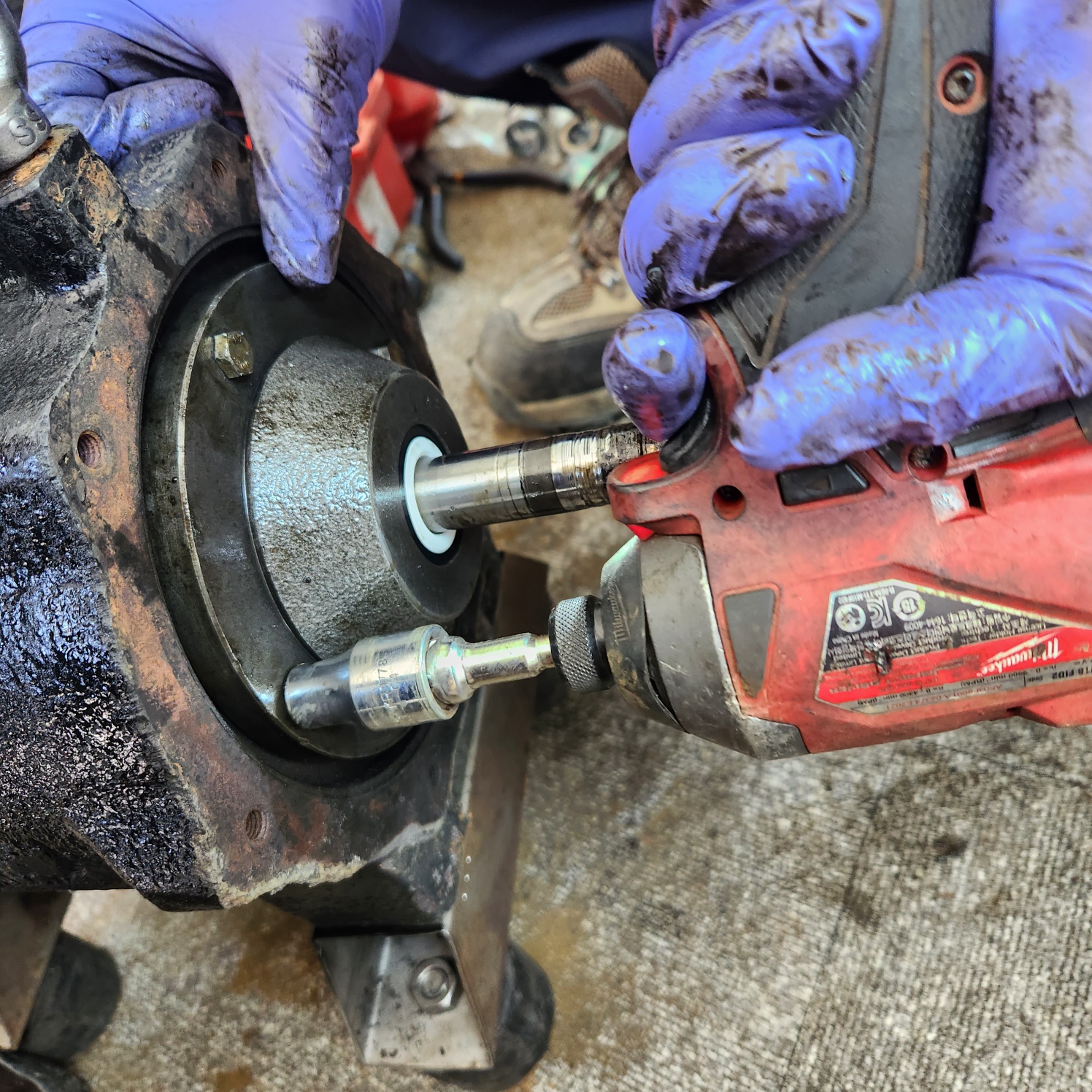 먼저 샤프트에 베어링부터 조립을 먼저 해줍니다. 베어링 같은 경우는 현장상황에 맞게 열박음이나 때려 박음으로 샤프트가 손상이 가지 않게 하는 것이 중요합니다. 베어링 가열기 공구를 이용하면 좋으나 현장 여건이 그렇지 못하면 때려 박기를 통해 베어링을 조립해 주세요.