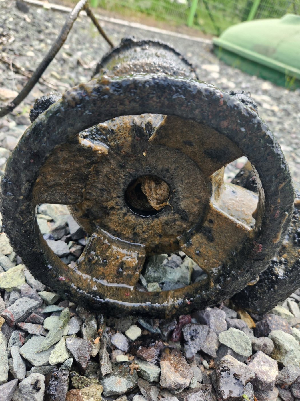 오수용으로 쓰던 펌프입니다. 펌프가 얼마 돌지 못하고 전류 오버 알람이 발생하여 물속에서 끄집어 냈습니다. 전류값이 올랐다고 하면 임펠러의 이물질끼임 부터 의심을 해봐야 합니다.