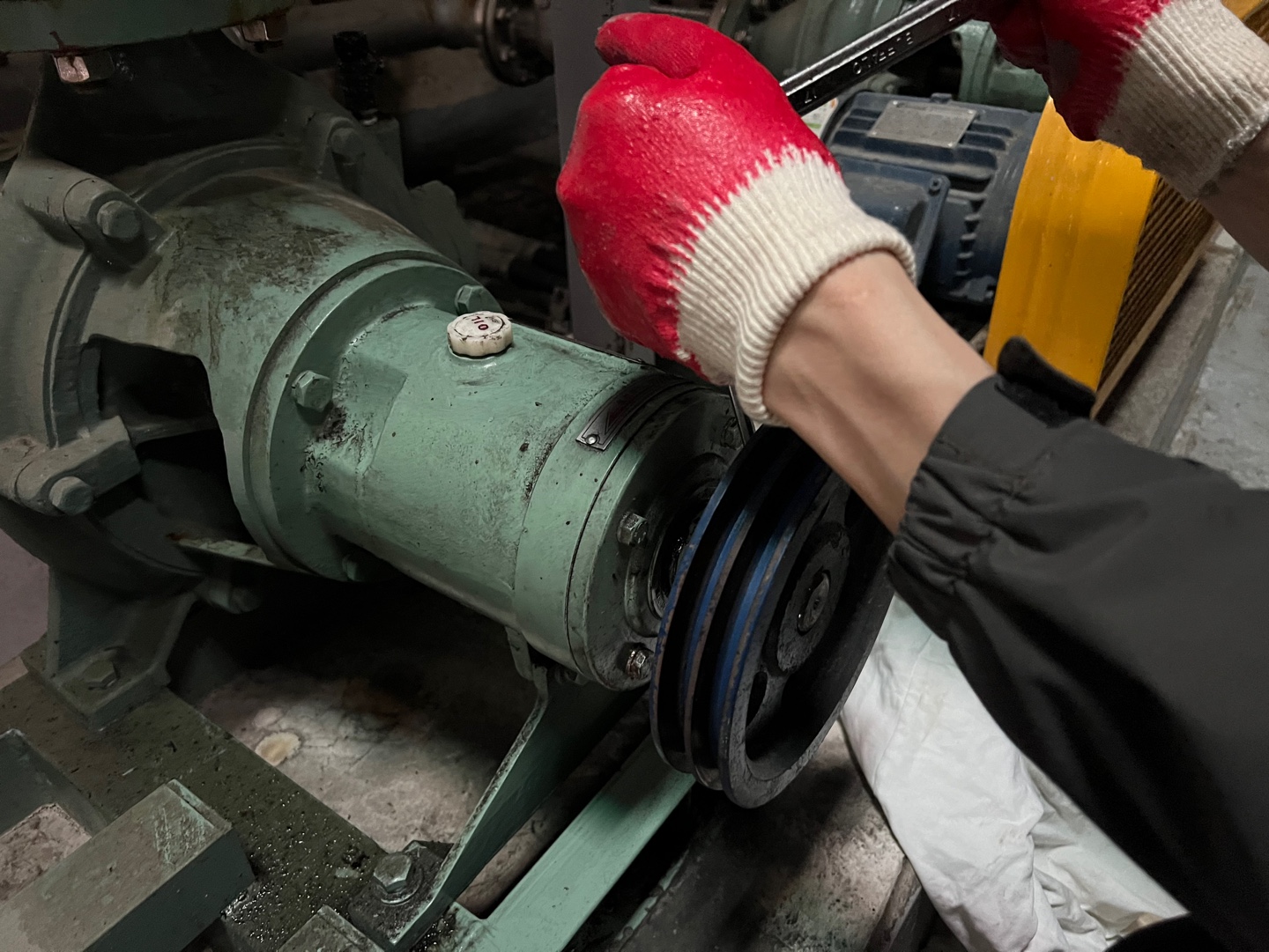 모든 확인이 끝났으면 분해의 역순으로 샤프트 키와 풀리를 조립하여 벨트를 체결하고 모터의 운전을 통해 다시 한번 마지막으로 오일의 누유를 확인하도록 합니다.