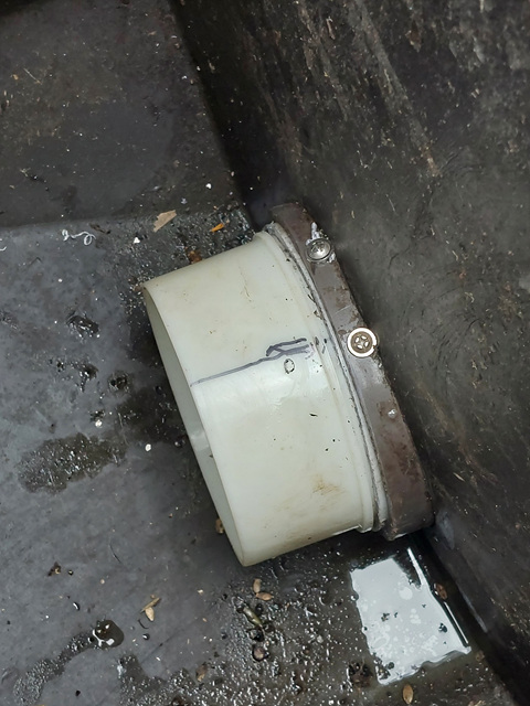 아까 망치로 넣어둔 파이프 내경 안쪽으로 역지변을 넣어서 시공 하였습니다. 기존 파이프가 돌출된 부위가 적었지만 피스가 들어갈만한 자리는 있었기에 피스를 2개정도 넣어서 단단하게 고정을 하였습니다. 기존에 설치되어있는 파이프의 사이즈에 알맞게 제품을 구입하여 시공하는것이 포인트입니다.
