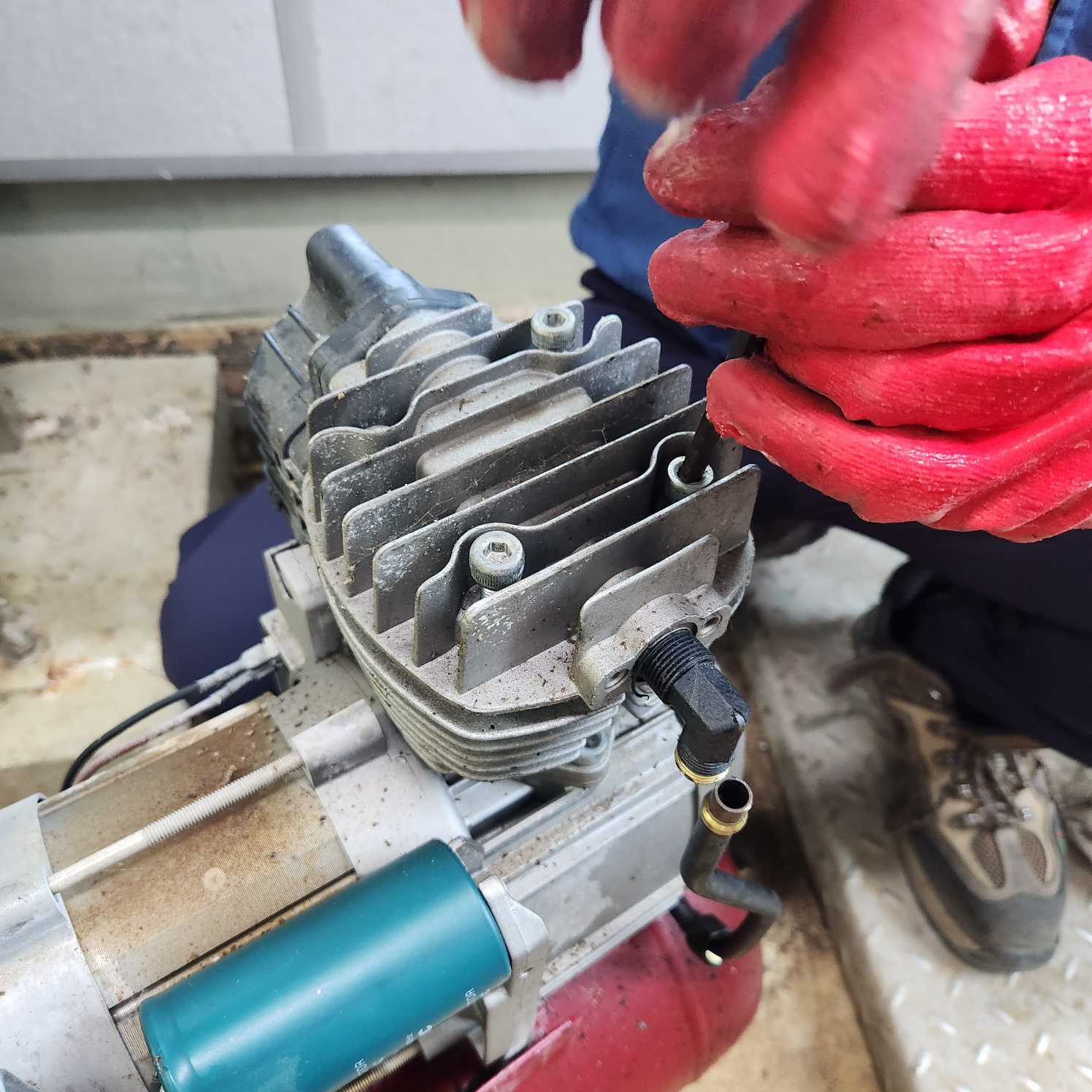문제는 윤활유의 부재이다. 자동차도 엔진오일을 들어가듯 컴프레셔도 원활한 왕복운동을 위해 오일이 들어가야 한다. 이 오일이 없으면 실린더와 피스톤사이의 윤활이 원활하지 못해 왕복운동을 못하는 것이다. 오일을 피스톤 머리부위로 천천히 넣어주면서 가볍게 톡톡 쳐주며 모터를 돌려보면 천천히 왕복운동을 하기 시작한다. 오일은 컴프레셔 오일을 업체 측에서 제공하므로 구입하여 넣으면 될듯하다.
