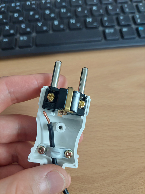 220v의 입력전압이 제대로 들어갈 수 있도록 양쪽으로 알맞게 전기선을 플러그 구멍사이에 넣어준 다음 볼트를 돌려 전기선이 플러그에서 빠지지 않도록 고정하여 줍니다.