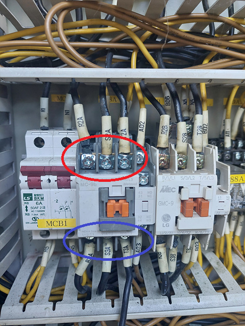 원인을 파악했으니 전류값에 맞게끔 마그네트 스위치를 교체하였더니 펌프가 정상 작동하였습니다. 1차측의 380V 전압이 강하없이 2차측으로 잘 전달이 됨을 포켓테스터기를 통해서 확인할수도 있었구요.