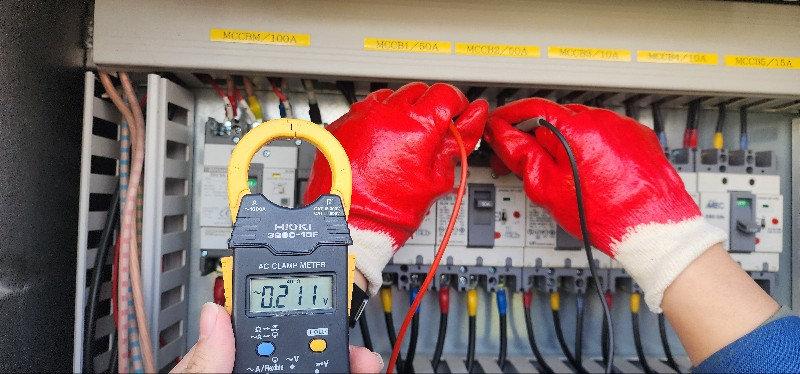 교체하고자 하는 차단기의 상단 접점을 확인을 하는 과정입니다. 상단의 차단기를 내렸다 할지라도 선이 어떻게 연결이 되어있는지 알수가 없고 안전이 중요하기 때문에 한번 더 테스터기를 통해서 확인을 해보는 것입니다. 현장에서는 첫째도 안전이고 둘째도 안전입니다.