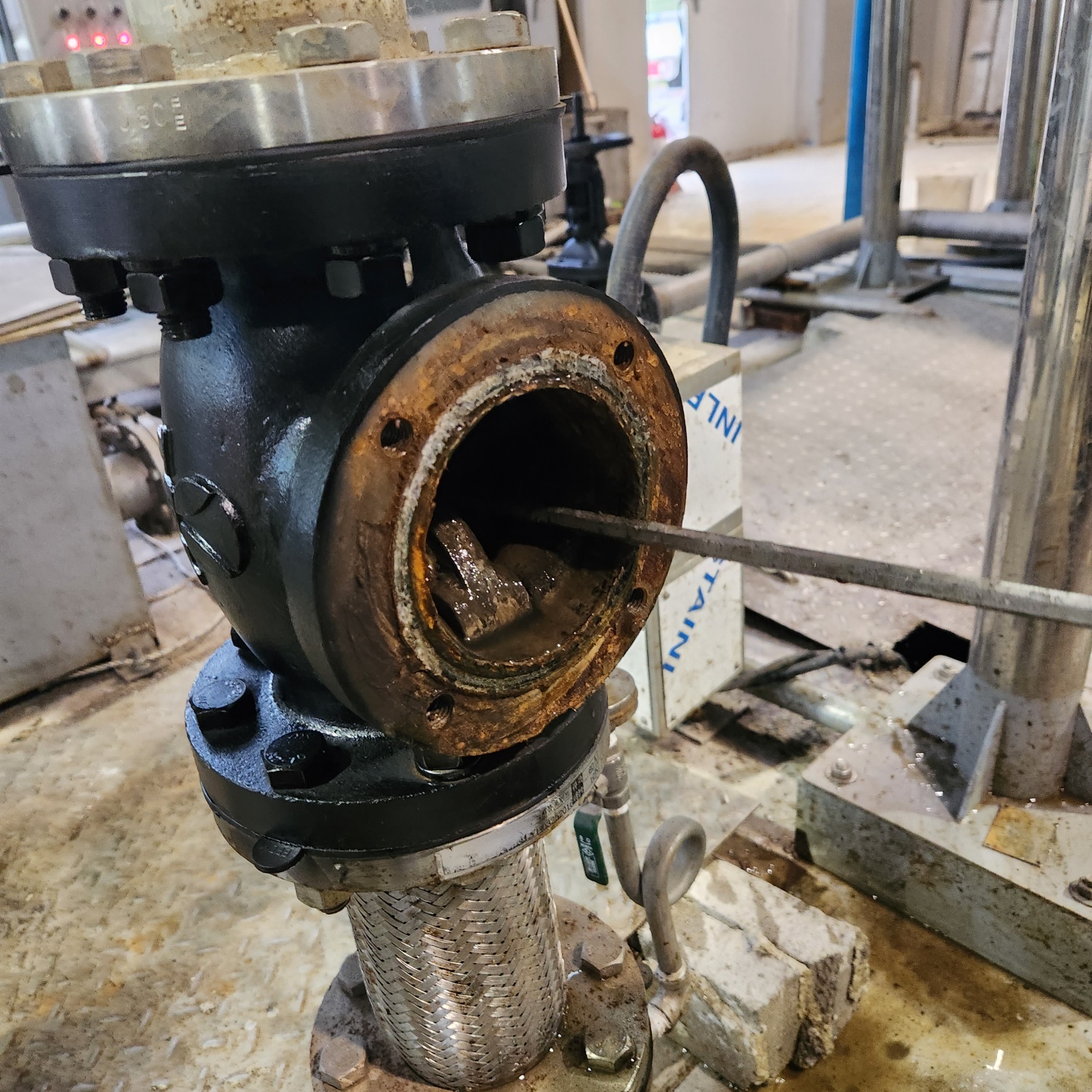 체크밸브 앞쪽 헤드부분 볼트 4군대를 풀어 열어보았다.
