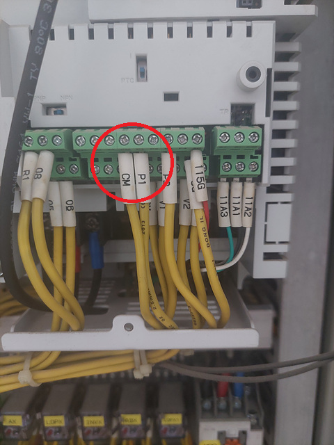 위의 사진은 IS7의 신호선을 찍어둔 사진입니다. 빨간색 동그라미 부분을 보시면 CM과 P1 이라는 선이 연결되어 있는데요. 이 선의 이름은 현장마다 모두 다르기 때문에 무조건 CM,P1이라는 선이 연결되지는 않습니다. 하지만 위의 사진과 똑같은 자리에 선이 연결되어 있다면 CM을 기준으로 해서 P1 자리는 현재 회전하는 방향이고, P2자리는 역회전 자리입니다.