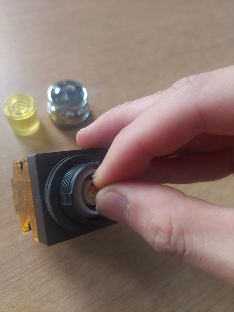 왼쪽 사진을 보시면 노란색 LED 램프가 들어가 있는것을 보실 수가 있습니다. 램프가 스위치 안쪽에 고정이 되어 있고 손이 들어갈만한 공간이 나오지 않아 분해하기가 힘듭니다.